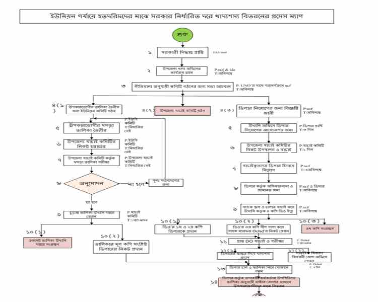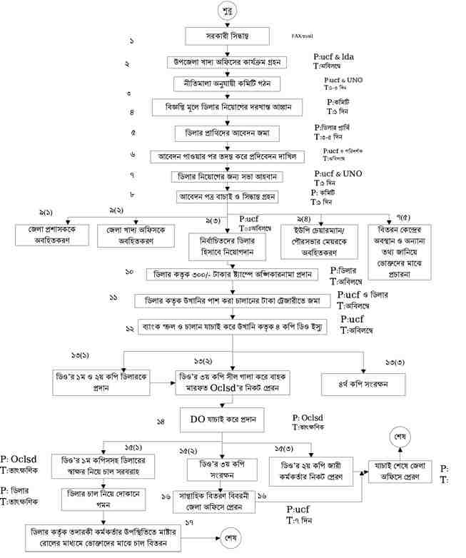 | ৭ | ইউনিয়ন পর্যায়ে হতদরিদ্রদের মাঝে সরকারের নির্ধারিত দরে খাদ্য শস্য বিতরন প্রসেস ম্যাপ | দেখুন | |